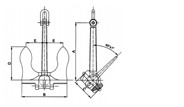 The Baldt Anchor is a high-performance stockless anchor crafted from durable steel, featuring either black tarred painting or hot-dip galvanized (H.D.G.) surface treatment for enhanced corrosion resistance.
