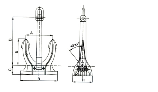 Additionally, when retrieving the anchor, its flukes remain naturally upward and overturn instantly upon contact with the hull, thus preventing damage to the hull plate.