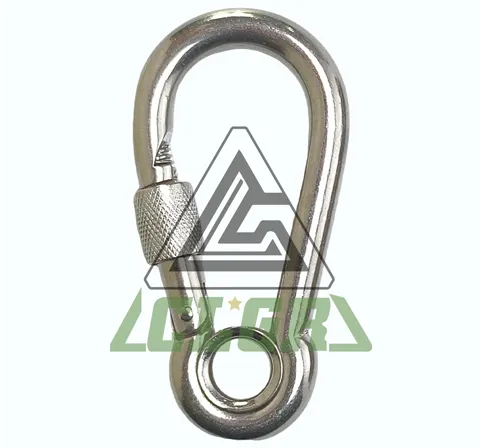 CLGR® Stainless Steel Carbine Hook with Eyelet and Screw Nut DIN5299 Form E, also known as Carbine Carabiner Snap Hook with Eyelet and Lock Nut or spring snap hook, Stainless Steel Screw Type Spring Snap Link.