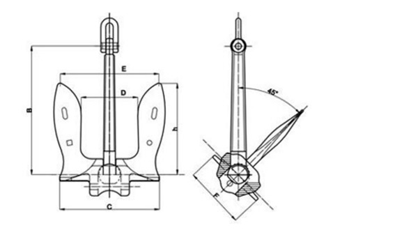 While maintaining all the functional capabilities of standard stockless anchors, this specialized version features extended flukes equipped with strategically positioned openings that serve the dual purpose of facilitating secure deck fastening through strapping material insertion and significantly minimizing the risk of anchor displacement during maritime operations.